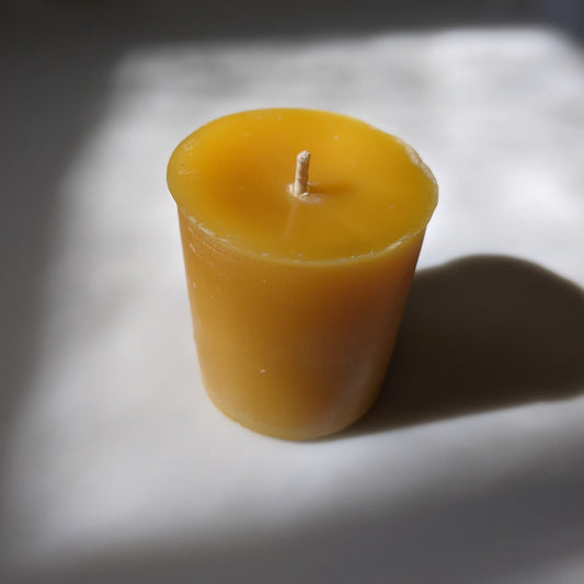 Our 100% beeswax candles will not disappoint. Don't be deceived by the size! A small beeswax candle will shine brighter and burn longer than any other kind of candle, even a large one with 3 wicks!